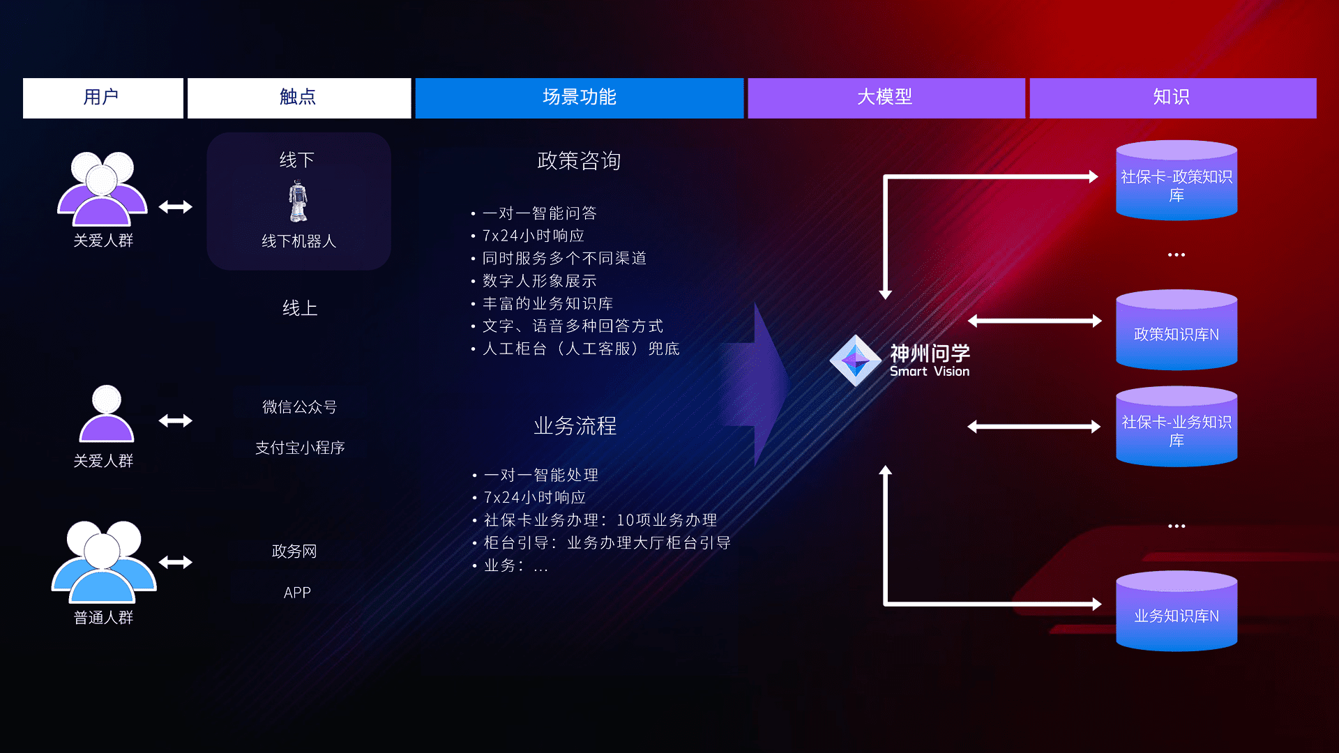 在服务大厅部署客服机器人,,,在线上应用和小程序配置客服数字人,,,724小时为群众解答常规问题,,客服机器人无法处理的,,,,转现场人工处理。。。